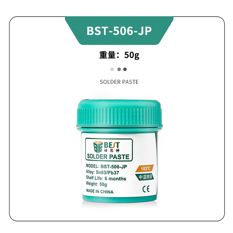 ? 产品名称: 中温锡浆 BGA植锡膏? 产品型号: BST-506-JP? 产品类别: 锡浆焊油系列? 产品成分: Sn63/Pb37? 产品重量: 50g