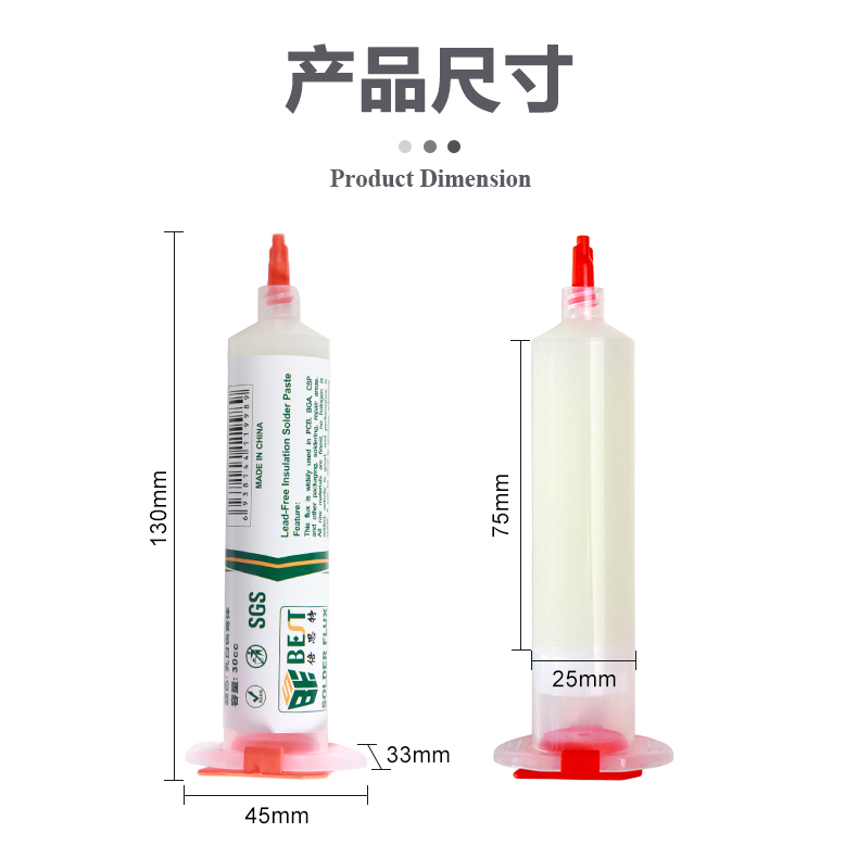 ? 产品名称: 无铅绝缘助焊膏? 产品型号: BST-559A? 产品类别: 锡浆焊油系列? 净含量: 30cc